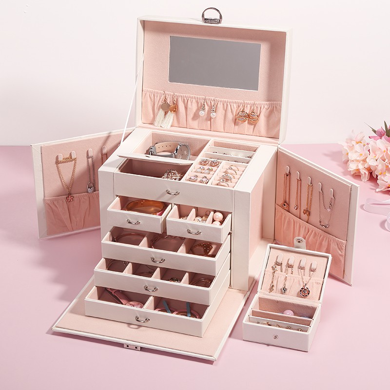Name: Casegrace Besar Kotak Perhiasan Kulit Pu Gadis Anting-anting Cincin Kalung Perhiasan Kasus Dengan Cermin Laci Velvet Kotak Penyimpanan Cermin Laci Velvet Kotak Penyimpanan