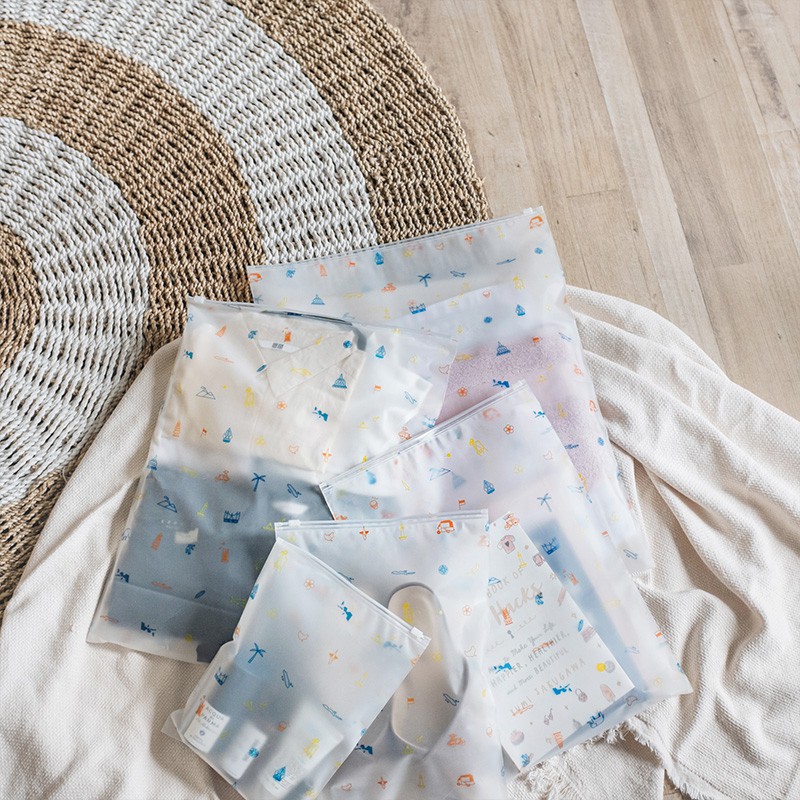 Keindahan dan ciri khas Indonesia dari Sumatra sampai Papua menjadi inspirasi desain yang dituangkan dalam bentuk pouch serbaguna ini. Pada desain polanya bisa kamu temukan ikon-ikon khas Indonesia seperti becak, rumah Gadang, candi Borobudur, gunung Krakatau dan masih banyak lagi, semua dengan kombinasi warna-warni biru-jingga-kuning yang cerah.Kantong penyimpanan praktis berbahan plastik ini dilengkapi dengan zipper di atasnya yang bisa dengan mudah dibuka dan disegel kembali. Simpan barang-barangmu terhindar dari basah dan debu, bahan transparan membuat isinya gampang dicari pada saat dibutuhkan kembali.Zipper Storage Bag ini tersedia dalam 5 ukuran berbeda, tergantung pada kebutuhanmu. Berbeda dengan kantong plastik pada umumnya, kantong ini terbuat dari bahan yang lebih tebal, bisa ditutup lebih rapat, dan bisa dipakai berulang kali.Pilihan ukuran:+ XS (20 x 28 cm)+ S (24 x 35 cm)+ M (28 x 40 cm)+ L (35 x 45 cm)+ XL (40 x 50 cm)Harga yang tertera adalah harga untuk 1 pc kantong.Desain oleh He