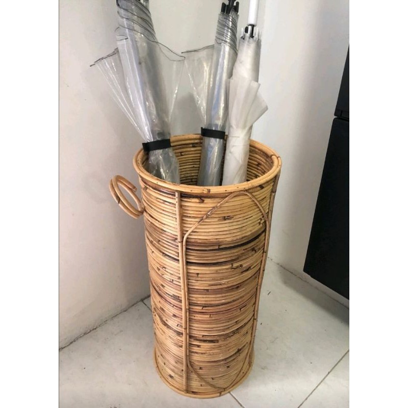 keranjang payung//serbaguna full bahan asli rotan jawit kulit tidak mudah rapuh,kuat dan tahan air..spesifikasi :Tinggi 50 cmDiameter lingkaran 25 cmFree vernis + obat anti jamurBahan full Real asli rotan tanpa ada bahan sintetisBerat 2 kg#Bahan jawit kulit#Anyaman khas cirebon#Free vernis#packing am