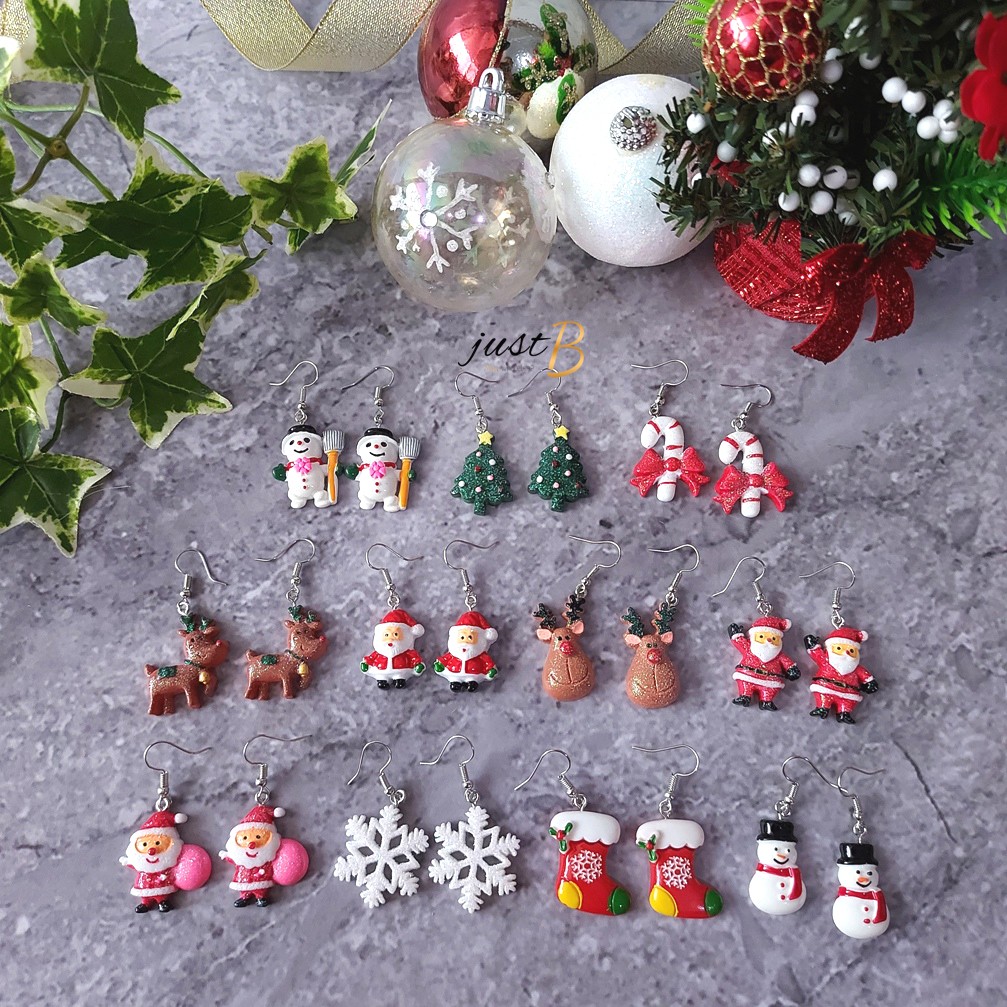 Name: [ready] Anting Natal Anak Hook Simple Handmade Figurine Santa Deer Snowman Candy Christmas Tree C001
