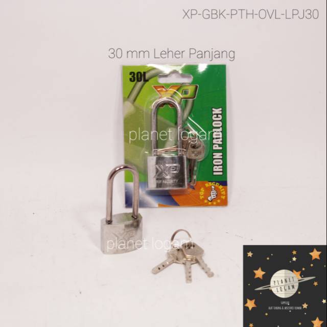 Gembok Besi Putih Oval Leher Panjang Uk. 30 mm [XP TOOLS]Kode Produk: XP-GBK-PTH-OVL-LPJ-30Deskripsi:- Gembok Oval- Model Leher Panjang- Warna Putih- Ukuran 30 mm- Termasuk 3 Kunci Besi Model Biasa- Merek XP TOOLS- Bahan Besi- Cocok untuk Mengamankan RumahPanjang: 115 mmLebar: 85 mmTinggi: 20 mmBerat: 82 gram*Tersedia model dan ukuran lainnya dengan merek sama:1. Gembok Besi Putih Oval Uk. 40 mm2. Gembok Besi Putih Oval Uk. 60 mmNB: MENERIMA RESELLER. SILAHKAN MENGIRIMKAN PESAN UNTUK INFO LEBIH LA