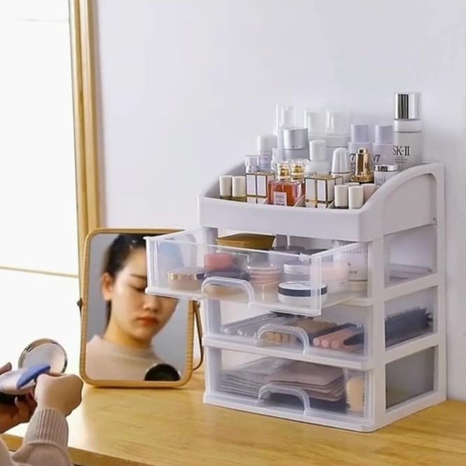 Name: Rak Kosmetik 3 Laci Small Makeup Storage Box Susun Kotak Organizer Multifungsi Desktop Storage